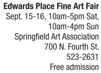On Saturday, September 15 and Sunday, September 16, join the Springfield Art Association for the 30 th annual Edwards Place Fine Art Fair. Both days of this family-friendly celebration (dogs are welcome, too!) feature more than 60 national and regional artists as well as artist demos, a used art book and art supply sale, live musical performances, foods trucks, plus a beer and wine tent. Special features for Saturday include a mini Raku ceramic pot firing event from 12-5 p.m. for $15 per person, the Enos Park Home Tour from 1-5 p.m. for $10 per person, and a formal tour of Edwards Place at 1 p.m. for $5 per person. Sunday’s special feature is a servant’s tour of Edwards Place at 1 p.m. for just $5 per person. The Edwards Place Fine Art Fair is free and open to the public, and more information, including the full lineup of artists and musicians, can be found online at http://springfieldart.org or by calling 523-2631.