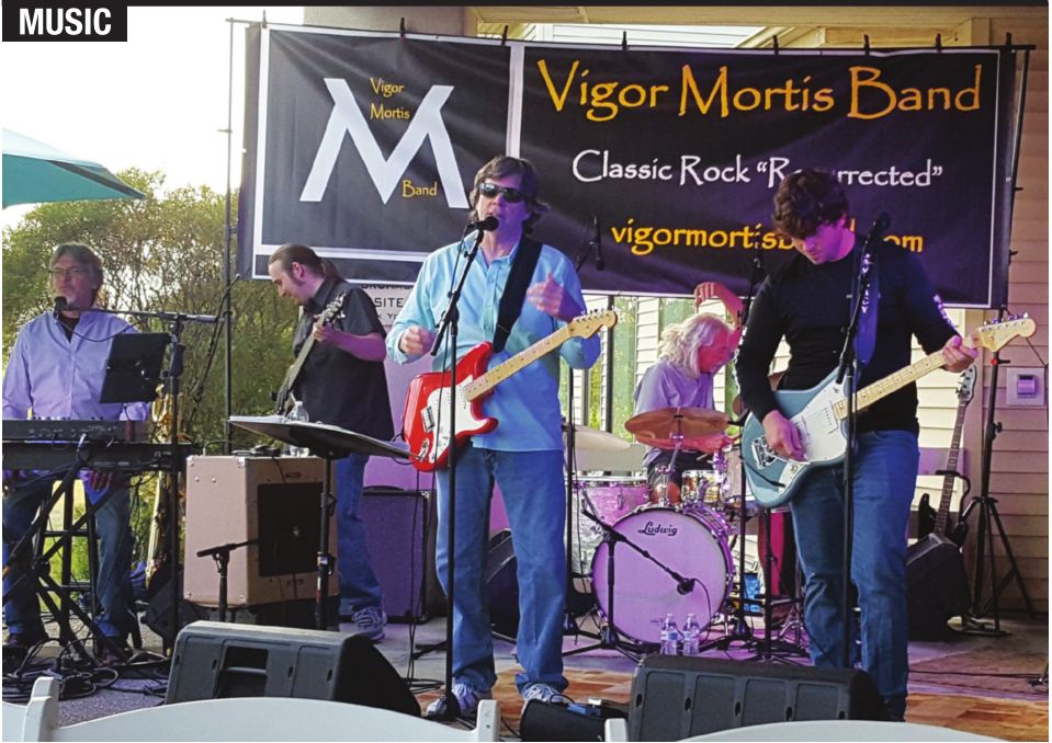 Hailing from Taylorville and consistently booked all over central Illinois, this classic rock band resurrects good songs, layering sweet harmony and strong lead vocals over an assortment of instruments not regularly found in area groups to allow for an extremely wide variety of material. Bandmates Sam Lacy (guitar, bass, keys, vocals), Tom Lacy (guitar, bass, keys, vocals), Dwain McAfee (keyboards, trumpet, vocals), Trene Pinnell (bongos, congas, drums, vocals), Terry Ransdell (drums) and Maxwell Slazinik (bass, saxophone) bring on the songs that “feature lush vocal harmonies, intricate guitar voicings, enhanced percussion, with added brass and woodwind colorations” as described on their nicely produced website. Who’s to argue with that, and why would they? Just come to enjoy the full-bodied vibes of Vigor Mortis on tunes from familiar and successful artists like the Eagles, Beatles, Zombies, Tom Petty, Neil Young, America, Stray Cats, Van Morrison and many, many more. Plus they have the coolest and possibly the strangest name around, and they always have some fun when playing.
