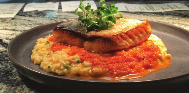 Before I answer that question, let me state that I used to be grossed-out by poultry or fish skin. Whenever I cooked salmon, I’d end up eating the flesh and leaving the skin behind. The same with fatty, rubbery chicken skin. My attitude towards skin changed the day I had an “Oktoberfest” dinner at Chicago’s famed Berghoff Restaurant and was served a duck thigh with shatteringly crispy skin and moist tender meat. The skin was what I remembered enjoying the most. A while back I heard that in Japan, fish skin was considered a delicacy, but it wasn’t until I experienced the crispy-skinned salmon at Springfield’s Vele restaurant that I became a lover of fish skin.