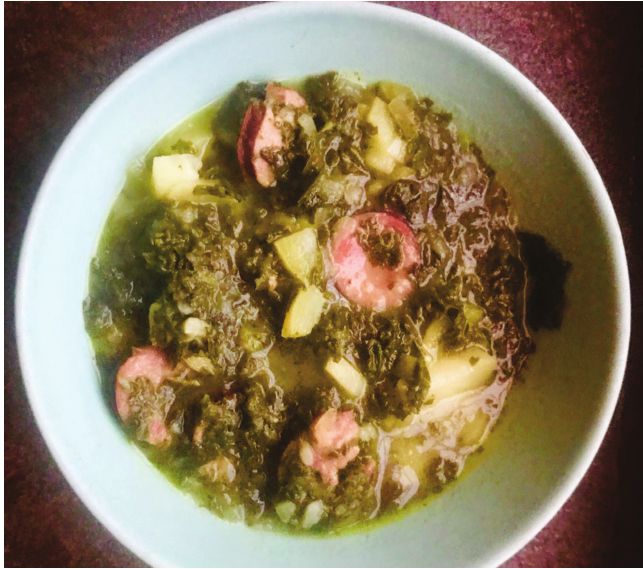 Caldo Verde means “green broth.” It is a traditional Portuguese soup often served during celebrations such as weddings and birthdays.