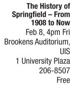 As part of Black History Month, the University of Illinois Springfield’s Engaged Citizenship Common Experience (ECCE) Speaker Series, the UIS Diversity Center and the Springfield NAACP will co-host a film screening and panel discussion on “The History of Springfield – From 1908 to Now.” This event will begin with a screening of the 30-minute film Springfield Had No Shame: The Springfield Race Riot of 1908. The film will be followed by a panel discussion led by Teresa Haley, president of the Springfield and Illinois chapters of the NAACP. The panel will also include previous NAACP presidents and members who will discuss the history and plight of the NAACP since its establishment in 1909. All Speaker Series events are free and open to the public. See also