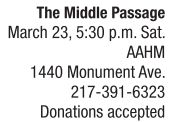 The Springfield and Central Illinois African American History Museum (AAHM) will host a grand opening for the exhibit The Middle Passage. The Middle Passage refers to the part of the slave trade where Africans were transported across the Atlantic to the West Indies under dire, crowded conditions. The exhibit includes a replica of a slave ship, with an interior atmosphere that imitates the cramped space of a slave ship, physical images representing slaves and an image of Mother Africa weeping and mourning over the capture of her children. It also includes narratives on the history of slavery and the Middle Passage in particular. This is a new type of exhibit for the AAHM because of its interactive, unique and innovative design. It will provide a visual, audio and sensory experience which is the first of its kind for the AAHM. The exhibit was designed and constructed by Jim Betts, an instructor at LLCC and retired scenic department head at Paramount Studios in Los Angeles. The exhibit is sponsored by the Rotary Club of Springfield South, LLCC, ALPLM and the Springfield Arts Council.
