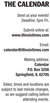 Springfield ICON Mar 25, 6:30-8:30pm Mon. Topics TBA. Free. springfieldicon.org. 217-528-9803. First Church of the Brethren, 2115 Yale Boulevard, 217-523-5212.