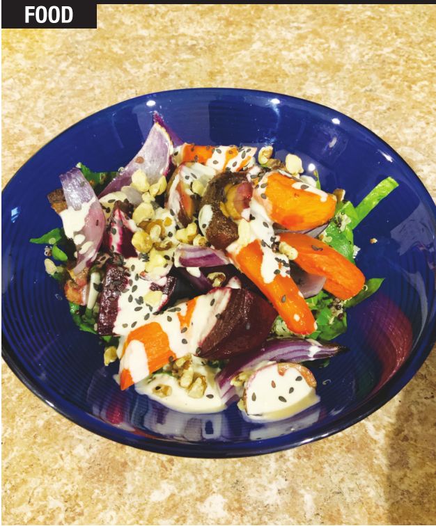roasted vegetables on top, then drizzle with the lemon tahini dressing.