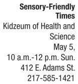 It Part of the mission of Autism Support of Central Illinois (ASCI) is to provide sensory-friendly events, grants, access to resources, support and educational programming for children with autism and their families. The services provided by ASCI are made possible by fundraising efforts and through donations. The hallmark of their educational programming is Camp ASPIRE, a six-week summer camp in June and July. Sensory-friendly social events sponsored by ASCI include a variety of activities such as movies, bowling, skating and glow golf in addition to three major holiday events. All of the events are free (concessions are often available for a cost) to children with autism and their families. This week, Kidzeum of Health and Sciences will host ASCI and will turn down the lights and noises to allow children with sensory differences and mobility issues to explore and discover the galleries at their own pace.