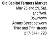 The Old Capitol Farmers Market has been produced by Downtown Springfield Inc. since 1999 with major support from HSHS St. John’s Hospital and also with support from Development Services Group, the City of Springfield and Central Baptist Church. It strives to support small farms and local growers by providing a venue to directly market their goods and strengthen the local economy by providing a venue for the public to connect with local growers, artisans and entrepreneurs. Doing so helps to support and revitalize the growth of downtown by increasing foot traffic and patronage to the downtown area. It is also a way to celebrate the diversity of locally grown food and artisan products that are unique to this area. For the third year, the Springfield Area Arts Council has programmed Music at the Market, which was voted Best Free Entertainment by Illinois Times readers in 2018. The 2019 season has begun and runs 8 a.m.-12:30 p.m. every Wednesday and Saturday through Oct. 26. See also