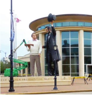 I like kitsch as much as anyone, but I’m not digging the Lincoln-and-some-guy statue freshly installed at the entrance to Abe World.