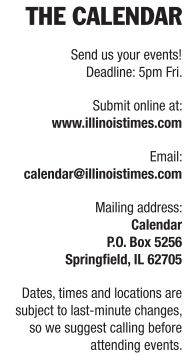 Iles House Spring Fundraiser Jun 1, 5-7:30pm Sat. Hors d’oeuvres, drinks and live music by Tom Irwin and Theresa O’Hare. Reservations. $50. 553-0055. Elijah Iles House, 628 S. Seventh St., 217-492-5929.