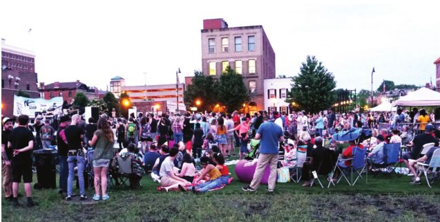 It was, in short, a dandy backyard party in a struggling business district that for too long has lacked a backyard, and this was just the second time out, on a Thursday night under moderate threat of rain. Closed-off streets and paved pavilions, delightful in their own ways, cannot compare with real grass, the kind that invites folks to spread blankets and relax amid revelry while drawing pickup soccer games on off-nights – I have seen one while driving past.