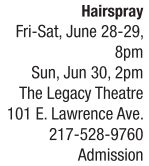 The Legacy Theatre heats up the stage once again with the smash Broadway musical Hairspray. The popular American musical that opened on Broadway in 2002 has won eight Tony Awards, including one for best musical , and it continues to be one of the most widely presented musicals today. Based on a 1988 cult film by John Waters, Hairspray is set in 1962 Baltimore where Tracy Turnblad, a big girl with big hair and an even bigger heart, has only one desire – to dance on the popular Corny Collins Show. When her dream suddenly comes true, she is transformed from a social outcast to an overnight sensation and must use her newfound power to dethrone the reigning Teen Queen, win the affections of the heartthrob and integrate a TV network, all without deflating her ’do. Athens High School senior Ainsley Chandler will play the lead and the production crew includes director Scott Richardson and music director Tyler Maul.