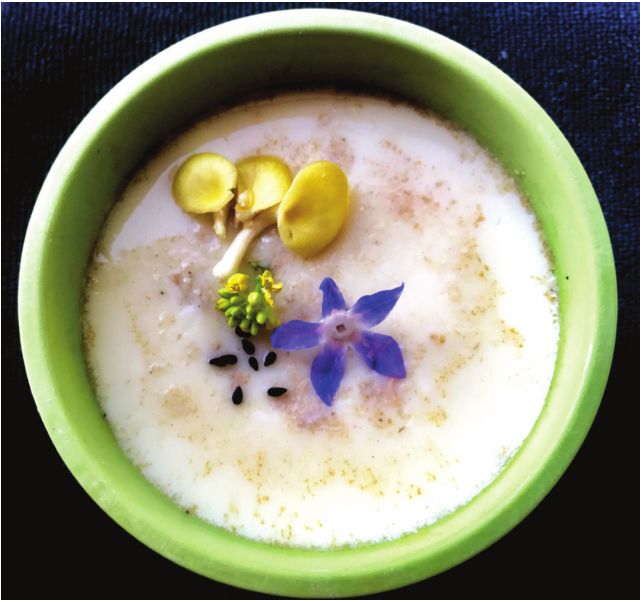 traditional Western custards which combine eggs with dairy, here the