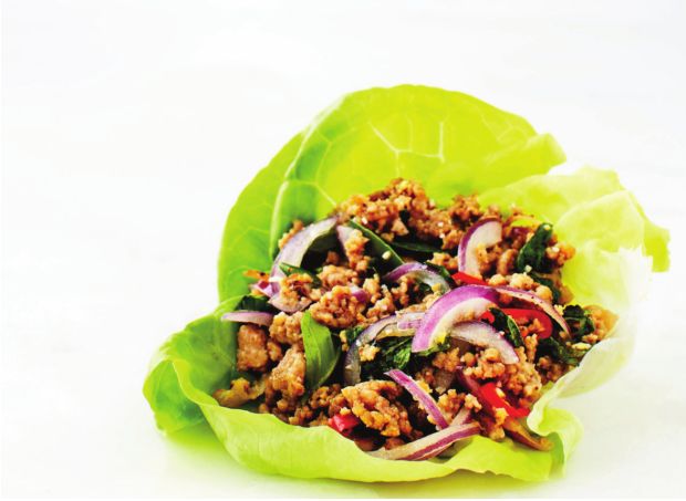 serve: Arrange the lettuce leaves on a platter. Spoon the pork larb