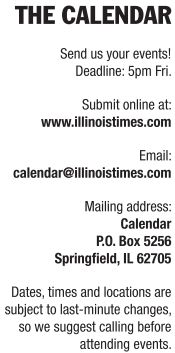 Conference on Illinois History Oct 3-4, 8:30am Thu-Fri. Panels covering topics from Illinois’s political, cultural, and social history that will appeal to academics, teachers and anyone interested in the past. Continuing education credits are also available.$50-$90. alplmfoundation.tix. Abraham Lincoln Presidential Library, 112 N. Sixth St., 217-558-8844.