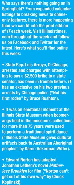 CORRUPTION IN SPRINGFIELD Scott Saunders makes an excellent point regarding locals pointing to the Chicago area when it comes to dysfunction in Sangamon County (“Gerrymandering prevents compromise,” Letters to the editor, Oct. 17). Many here cry out about “King Madigan” while ignoring dysfunction and corrupt practices within the City of Springfield, CWLP and Sangamon County. Qui Tam Via illinoistimes.com