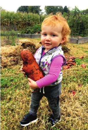 Out of curiosity I pulled back some of the straw beneath the now-dead vines, revealing a glorious cluster of vivid orange tubers. It was like unearthing a glorious hidden treasure, and before long baby and I were digging through the dirt with our bare hands, pulling up sweet potatoes that ranged from massive to tiny. What started with a single six-pack of plants that I purchased from Suttill’s Gardens back in May ultimately yielded nearly 40 pounds of sweet spuds.