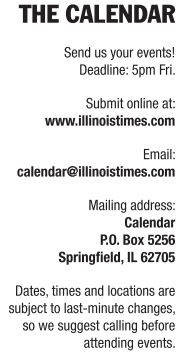 Membership exhibition Nov 1, 5-7pm Fri. Painting, photography, sculpture, ceramic, glass, fiber and more. A great place to purchase unique holiday gifts while supporting local artists. Free. SAA Collective Gallery, 420 S. Sixth St., 217-544-2787.