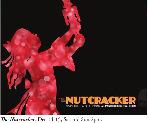 The Nutcracker Dec 14-15, Sat and Sun 2pm. A grand holiday tradition presented by the Springfield Ballet Company. UIS Performing Arts Center, One University Plaza, 206-6160.
