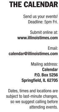 Parent’s Night Out Wed., Dec. 4, 5:30pm. Parents can drop off their kids while they enjoy time out shopping for the holidays and Downtown Springfield’s holiday walks. Supervised fun, educational activities and a healthy meal will be provided. Admission is $25 per child. Kidzeum of Health and Science Children’s Museum, 412 E. Adams St., 217-971-4435.