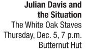 In tried-and-true fashion, this young man calls himself a “traveling musician” spending his precious time “plying his trade through guitar and mandolin on the roads of this country” and that surely is just what he’s doing. Julian Davis started his music a-rolling in 2016, convinced that bluegrass is a wide-open genre with room for a “clean new treatment” as well as the old (not necessarily in the way) ways. He hit the road in 2017 as a solo act playing wherever and soon had a troupe along that became The Situation. Earlier this year, the talented guitar picker did a sixmonth stint playing six-string lead in The Jeff Austin Band, a splendid gig by all accounts. Just recently he and his band of playing pickers released a live LP, then toured widely and consistently, presenting to the world at large the Julian Davis concept of “contemporary jamgrass and traditional bluegrass featuring a mix of original songs and timeless covers” and continue to constantly spread the good vibes of musicality to all in listening mode. See also