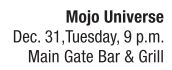 BAND SPOTLIGHT | Mojo Universe This band of brothers in style and substance hail from the St. Louis area and play regularly in the metro scene and surrounding towns. We welcome them for a New Year’s Eve show and hope they bring their groovy grooves and danceable sounds back to Central Illinois real soon. Mojo Universe expands into all kinds of cool blues-related songs including straight up, get down blues classics, adventures in rock and R&B, plus a smattering of originals, including the ever-popular, “Every Woman Loves an Automobile” and the always requested, “Exotic Dancer Girls.” The well-seasoned bunch of music-making men include Tom O’Connell (keyboards, vocals, band booking), C.W. Wright (guitars), Mike Burnside (bass, vocals) and Ed Brown (drums, vocals) with guest musicians and singers often sitting in supporting the fine tradition of musicians playing together for entertainment and enjoyment. Dig this music; it’s the good stuff done well. As one Facebook fan wrote, “This is the best band in the USA,” and who are we to argue? See also