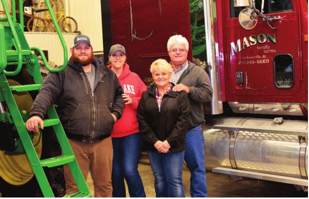 Mason and his late father farmed 240 acres in the late 1970s when Andy went away to college. He returned to the family farm with his new bride, Delores, after a brief career on the corporate world, and the young couple made the decision that a bigger family farm would be the best way to weather the profession’s inherent volatility. Over the years the Masons have purchased as much adjoining farmland as they could and are leasing the rest. They also have a hand in the family farm on which Delores Mason was raised, a 4,000-acre operation in Missouri.
