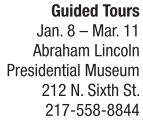 The Abraham Lincoln Presidential Museum is offering a new guided tour focused on Mary Todd Lincoln. The tour will take guests through the museum to learn more about Mary’s life before, during and after her relationship with Abraham Lincoln. During the tour, interpreters will lead a discussion of her crucial contributions to Lincoln’s political career and her influence during the White House years. Visitors will hear engaging stories about Mary and learn about the losses she had to endure throughout her life and how those losses contributed to her behavior, especially in her later years. The tour may lead visitors to consider the ageold question of whether or not she was insane. The answer, much like Mary, is complicated. The tours will be offered twice each Wednesday from Jan. 8 through March 11 and are included with museum admission. Reservations will not be taken online. Guests may sign up in person or by phone on the day of the tour. illinois.gov/alplm. See also