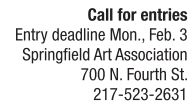 In cooperation with the Liturgical Arts Festival of Springfield, the Springfield Art Association will host a juried exhibition of liturgical and sacred art as part of the biennial, interfaith Liturgical Arts Festival, Come Creative Spirit, scheduled to run March 28 through April 25. The exhibition offers education, inspiration and appreciation of the many forms of spiritual expression. All spiritual interpretations, approaches and media are welcome. The goal of the exhibition is to support diversity, promote understanding and foster tolerance. It is open to all artists living in the United States, working in all media. All submitted artwork must explore a spiritual or religious theme. Work must be original and completed in the last three years. No previously submitted work will be accepted. springfieldart.org.