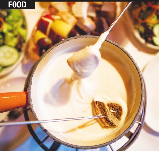 Born out of winter resourcefulness in 18 th -century Alpine farmhouses, fondue was a way to utilize cheeses that had become hard and dry during winter storage, especially during a time when fresh ingredients were difficult to source. Fondue is essentially made from three components: cheese, liquid and starch. A basic formula for fondue for two is one pound of cheese, one cup of wine, and two tablespoons of flour. The best cheeses are ones that melt smoothly – such as Gruyere and Emmanthal. According to the culinary chemist Hervé This: “Well-ripened cheeses are best suited to the preparation of fondues because, in the course of ageing, enzymes called peptidases have broken up the casein and the other proteins into small fragments that are more readily dispersed in the water solution.” The best wine to use is an acidic white. As Hervé This writes in his book Molecular Gastronomy: “Wines that are excessively acidic, and if possible, very fruity… have high concentrations of tartaric, malic and citric acids. Malate, tartrate and especially citrate ions are very good at chelating calcium ions. The acidic and fruity wines experts prefer help separate the casein micelles and release their constituent proteins, which stabilize the emulsion by coating the fatty droplets.” Translated into plain English, the more acidic the wine, the less likely your fondue will separate.