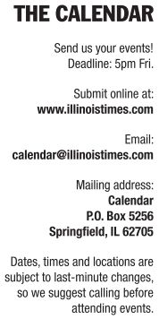 Poetry open mic Third Wednesday of every month, 6-8pm. Sign up to read some poetry, prose or non-fiction, or just relax and listen. A Springfield Poets & Writers event. Free. Robbie’s, 4 S. Old State Capitol Plaza, 217-725-9058.