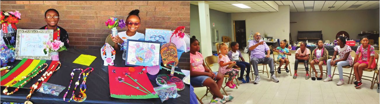 Office space for the center is covered in art by Crisp and kids who attend the camp, including a cardboard painted mask and decoupage vases with pictures of Martin Luther King Jr. The kids sell their wares, which Crisp said provides a valuable lesson in seeing projects through and being compensated for work.