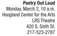 The Springfield Area Arts Council will host 16 high school students who will participate in the statewide poetry recitation contest. The students are winners and runners-up in competitions held this month in eight regions across Illinois. Starting in their own classrooms, these students studied, memorized and recited renowned classic and contemporary poetry at each level of competition. This week, a panel of poets, teachers and performers will judge each student’s recitation and select a state champion. The state winner will be awarded a chance to compete in the 2020 Poetry Out Loud National Recitation Contest in Washington, D.C., in April, joining a field of 53 students vying for the top prize of a $20,000 scholarship. The Springfield Area Arts Council coordinates this annual local contest in partnership with the Illinois Arts Council Agency. Poetry Out Loud is backed by the National Endowment for the Arts and the Poetry Foundation. Now in its 15th year, the contest is designed to encourage interest in poetry at the high school level. This year, over 10,000 students and 200 teachers from more than 40 Illinois public and private high schools participated. See also