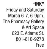 Explore the medium of ink at the opening reception for a collaborative group exhibition at The Pharmacy Gallery & Art Space. It will feature the work of artists who specialize in ink, plus a henna artist offering designs, screen printing installation and performances on both Friday and Saturday nights. The exhibition will be on display through June 20. The mission of The Pharmacy Gallery & Art Space is to cultivate and celebrate expressions of multidimensional artists. The program strives to be a catalyst and forum for advancing, discovering and connecting through contemporary art, and seeks to enrich and educate the community through innovative cultural events. The program is partially supported by a grant from the Illinois Arts Council through federal funds provided by the National Endowment of the Arts and with funding by the Springfield Area Arts Council. See also