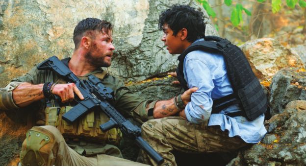 Sporting the perfect action hero name, Chris Hemsworth is Tyler Rake, a mercenary with more than a few aches and pains as well as a murky past. While enjoying a muchneeded break, he and his team get an offer they can’t refuse. The son of Bangladesh drug lord Ovi Mahajan (Pankaj Tripathi) has been kidnapped by a rival and is being held for ransom. Rather than suffer the humiliation of paying it – and for other reasons that cannot be divulged here- he has one of his cronies hire Rake and his crew to get the boy back. They have 16 hours and the clock is ticking when boots hit the ground.