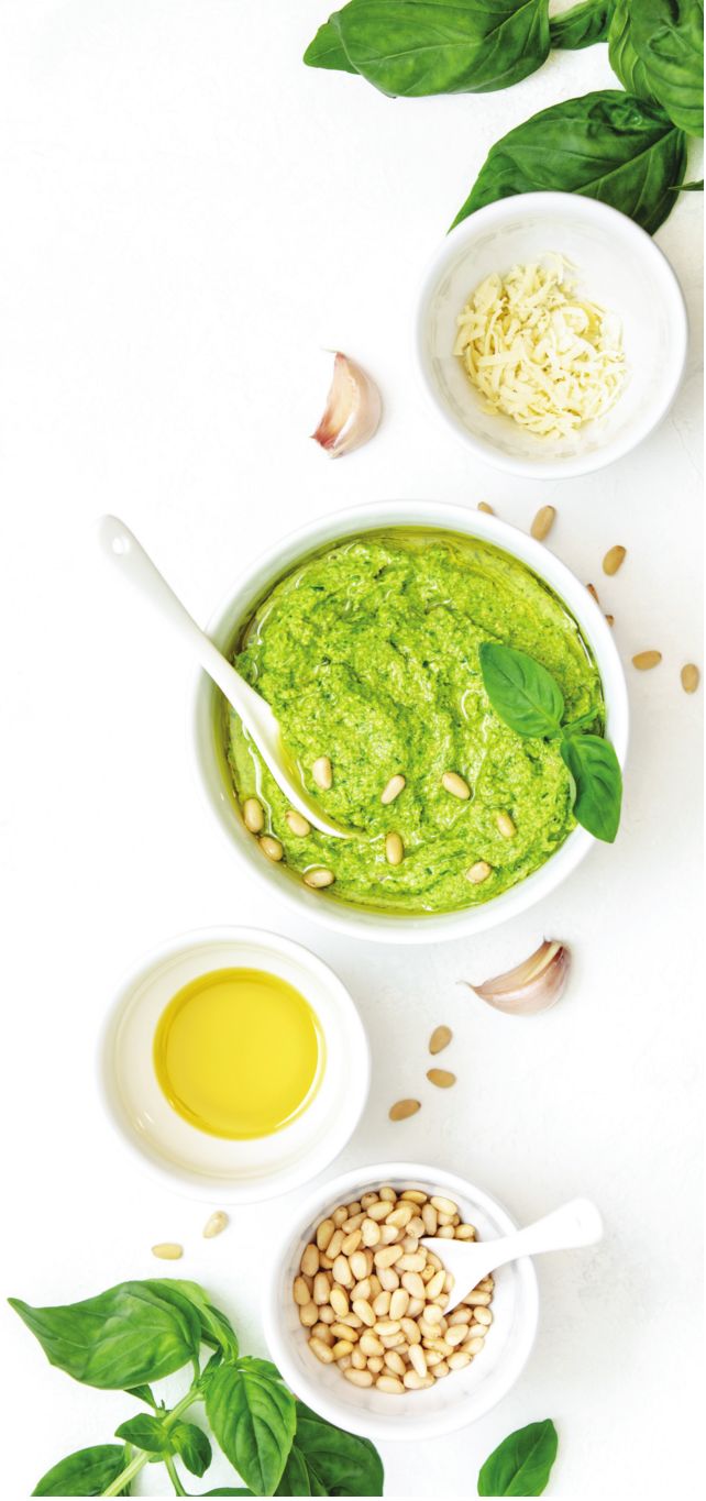 An ideal preparation in this era of limited grocery shopping, veggie pesto can be made with either fresh or frozen vegetables. Pesto roughly translates to “pounded” in Italian, and simply refers to a sauce made with crushed or pounded ingredients. While the most famous version, pesto alla genovese, consists strictly of garlic, fresh basil, pine nuts, lemon and olive oil, there are a myriad of other varieties found throughout Italy and the world. My mother’s original recipe was a broccoli pesto based on one found in Martha Stewart’s 1984 classic Entertaining. Tossed with cheese tortellini, it was one of her party staples.