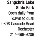 When you are ready to head out of doors as the spring weather slowly warms into summer, some state parks in central Illinois will be waiting for you, including Sangchris Lake State Park. Operated under the Illinois Department of Natural Resources (IDNR), the park is about 15 miles southeast of Springfield. Native forests of oak, maple, butternut and persimmon trees, along with an abundance of wildflowers and native plants, are contained in its 3,000 acres. The lake has 120 miles of shoreline and is stocked with bass, bluegill, crappie and catfish. Hikers, bikers and horseback riders will enjoy hearing the songbirds and spotting a variety of wildlife. While some activities, such as hunting and camping, are restricted, visitors are still able to fish, boat, observe wildlife, enjoy picnics and hunt for mushrooms. Call the park first to plan your visit as a few facilities remain closed and IDNR has implemented some rules for public health and safety. See also
