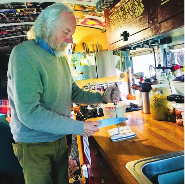 At the time this was written Peter, wife Ann, and dog Toulouse have survived 30 days in their school bus home. They’ve spent six days in campgrounds, twenty days in four private driveways and four days in a junkyard. At present they are in an undisclosed location somewhere along the Illinois/Wisconsin border.