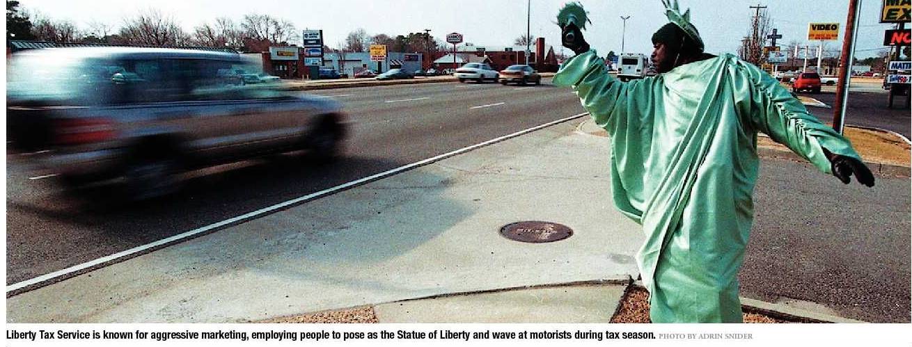 So I came up with a plan that would give him the cash faster: During dinner, I gave him $1.50, which made him happy. After he went to bed, I waited up until the Tooth Fairy came and went, then snuck the money she left — two crisp new dollar bills — out from under his pillow while he slept. I netted 50 cents on the deal, and my son never really knew what hit him. See, I got this idea from those green toga guys. You know — the ones waving at you from the curb in front of Liberty Tax Service stores? They and their counterparts in the little kiosks at Wal-Mart or in strip-mall storefronts next to the chicken wings joint, offer the exact same kind of deal, if you replace the Tooth Fairy in my scenario with Uncle Sam. Of course, with taxes, the process is more complicated (you can’t just put your W-2s under your pillow) and the wait a bit longer than overnight. According to the Internal Revenue Service, it’s six to 15 days if you file your taxes electronically; maybe a month if you file paper returns by mail. To find out how these places work, I asked Alexander Holland to try Liberty Tax Service for me. Alex is 22, a Lincoln Land Community College graduate, and the kind of gunner who always has a day job and a half, plus a night gig playing bass in a band called Bük. This year is his first time filing solo, so he wanted to make sure he did everything right.