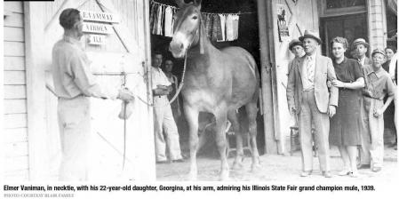 The people, the animals and the stories that shape our lives Georgina Blair died last week at 92. When I visited in her home on the family farm in Virden a few years ago, she showed me this picture of her and her father with one of his prize mules, the Grand Champion at the 1939 Illinois State Fair. Over the years Georgina and I had served on church boards together, we’d traveled the state to meetings, and, both in the car and during business, I’d gotten to know her as strong and stubborn like her father’s champions. A person of faith, she was wise in the way she practiced it, skeptical of pat answers, standing for her convictions and saying no to foolishness.