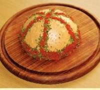 Now take the tip of a sharp knife and pick up a little paprika. Carefully sprinkle the paprika over the areas covered by the chives. Liptauer can also be served on cucumber slices, spread on thinly sliced ham rolled up and sliced into pinwheels, or as a topping or stuffing for pork chops.