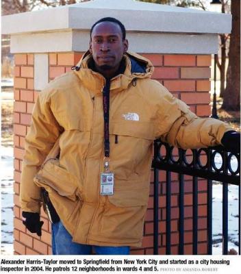 be alleviated within a few days. He asks for any other questions, and a voice from the back calls out, “Alex is the man.” Marilyn Piland, the association’s executive director, echoes the praise. Since Taylor started as the area’s housing inspector, he’s enforced the new trash ordinance and cut their list of monthly complaints by two-thirds.