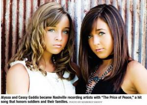 Since Alyssa, now 13, penned “The Price of Peace” last summer, the girls have recorded the song in Nashville, starred in their own music video (which appeared in movie theaters across the country from May 22 to June 11) and performed for thousands of soldiers and their families.