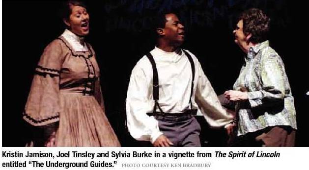 In fact, Lincoln’s time on stage is brief, but hearing Keith Bradbury recite Presidentelect Lincoln’s brief but profound farewell address at Springfield is a treat. Good voices fill the show’s cast, which includes wellknown Illinois folksinger Barry Cloyd as well as Roger Davis, Harvey Mack, Joel Tinsley, Kristin Jamison and several other talented performers.