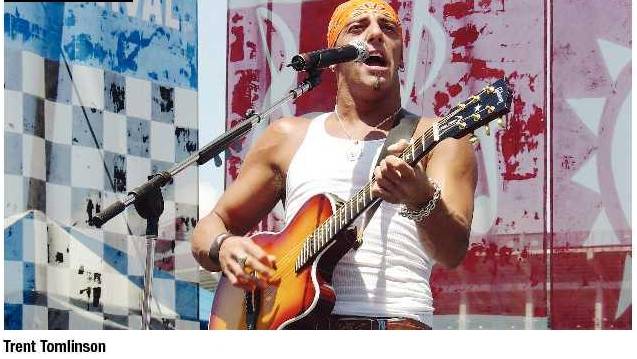 Trent Tomlinson comes off as the most rockoriented of all the country performers at Y’allapalooza at the PCCC. His debut record, Country is my Rock, tells his story well. He began playing in rock bands during high school years spent near St. Louis, then turned the very gradual corner to country music with a rock edge. He moved to Nashville and quickly made his mark penning songs for rocking country band Emerson Drive, then spent years playing Nashville-style publishing deal roulette. After heartbreaking encounters with near signings to major record deals, Tomlinson landed with Lyric Street, a company that seemed to understand his vision of country music, which according to him entails, “open a beer, sit in a lawn chair, let’s have a party” kind of country. He also adds in references to heaven, Mama, Daddy, drinkin’, and not drinkin,’ to round out the complete country demographics.