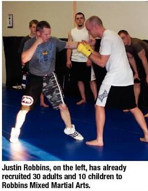 On April 15 he opened Robbins Mixed Martial Arts at the corner of Jefferson and Veterans Parkway. The new gym, which specializes in wrestling, jiu-jitsu, boxing and kickboxing, has attracted nearly 40 members.