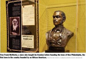 country legally established by an African American, and it’s 100 miles from Springfield,” says Goebel-Bain, adding that the exhibit is the first to show objects recovered from the settlement’s early years. “Free Frank came here the same year as Lincoln.