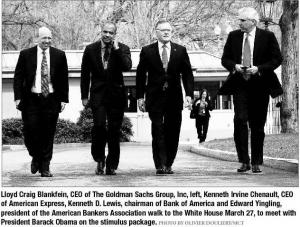 Then there are special little puffs of smoke used by particular banks. For example, Goldman Sachs (which has us taxpayers on the hook for more than $50 billion in its bailout package) breathlessly announced a dazzling profit of $1.8 billion for the first quarter. The dazzle dimmed, however, when it was learned that Goldman had altered its definition of “quarter,” shifting its normal December-to-March quarter ahead one month, thus disappearing December. That was a month in which the bank lost $1.5 billion, so scrubbing it gave the revised calendar a neat banker buff job. Meanwhile, these same bankers are using their miraculous profit numbers as an excuse to — guess what? — bulk up executive paychecks! While the Obama administration has imposed some limits on the pay of the very top executives of bailed-out banks, the CEOs expect to be out from under these restrictions before long. So, to take care of themselves — and to restore Wall Street’s sense that investment bankers are the most deserving people on the planet — they are now setting aside billions of dollars to be distributed at the end of the year as executive compensation, including the return of outlandish bonuses.