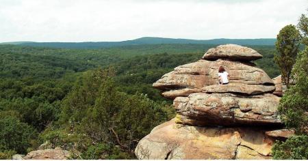 Covering more than 270,000 acres across southern Illinois, this unglaciated region offers great hills to explore, rock formations to scramble up on, and streams to cross.