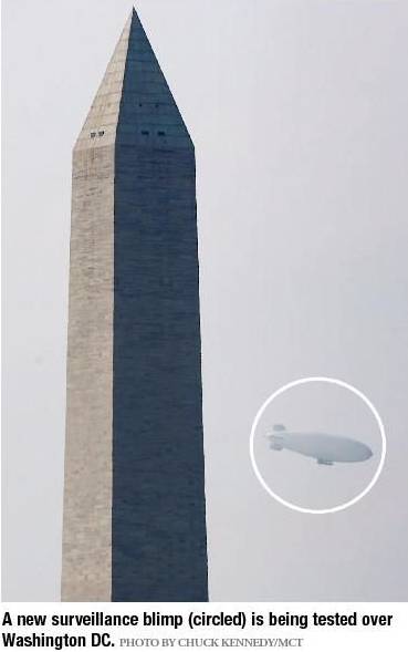 It’s a blimp. But not at all like the friendly “Snoopy” dirigible that MetLife deploys at various sporting events. This thing is 20 times larger and is designed to be an eye in the sky, floating 12 miles above the earth, to provide unblinking surveillance of whatever and whomever the authorities want watched, including you and me. Unlike spy planes, the Pentagon’s unmanned super-snooper can “park” anywhere in the sky and stay focused on groups or individuals for days, months or years, capturing every second of their comings, goings and doings.