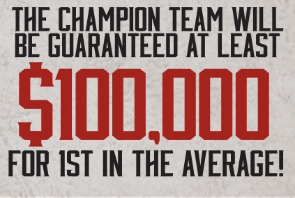 Based upon 100 entries – 100% payout at the Qualifiers $1,000 per team ($500/man) x 100 teams x 25% = $25,000