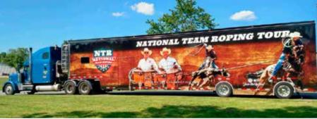 As you flip through this issue of The Arena we’ll be zeroing in on two large-scale, three-day events; The Big Nevada in Fernley and The Big Horn Classic in Buffalo, Wyo. Both take place June 17-19 and kick start a spectacular NTR summer schedule. As seen in the picture above, the NTR has invested in some new innovations, not just in roping formats, but in our production as well. This new 53-foot Featherlite merchandise trailer, which will double as an entry office, will be c